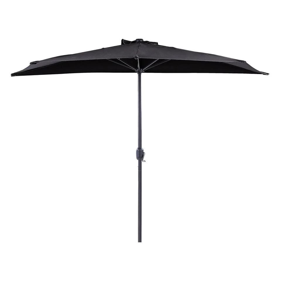 Balkonparasol met half ronde zonbescherming. Bescherm jezelf van de zon en spendeer nog meer tijd buiten met deze stijlvolle half ronde parasol. Omdat de parasol niet helemaal rond is past deze parasol perfect op het balkon of in kleinere tuinen of terrassen. De parasol is gemaakt van stevige materialen met UV-bescherming zodat de kleuren niet snel zullen vervagen. De parasol kan gemakkelijk geopend worden door middel van de zwengel.