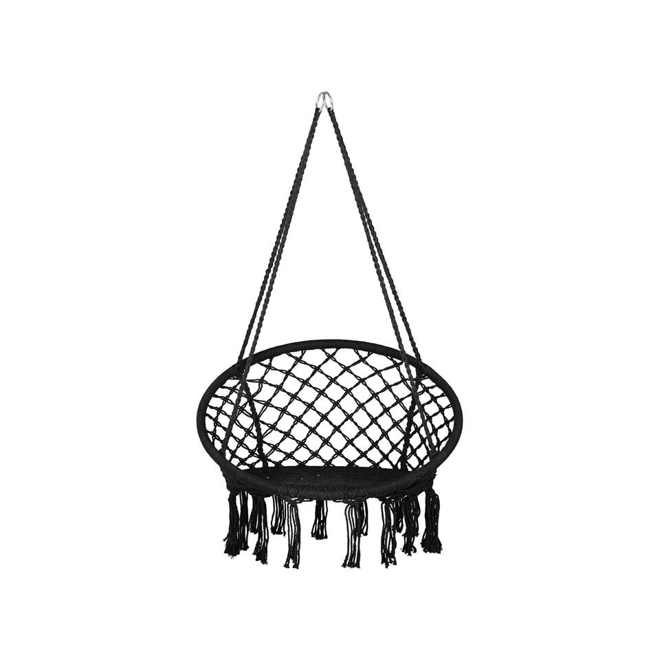 Schommel hangstoel. Met deze hangstoel kom je in een mum van tijd in een echte ontspanningsstaat. Leun achterover en geniet van het delicate schommelen, of het nu in je eigen slaapkamer, woonkamer of balkon is. De stoel heeft een sterk frame met een gevlochten, boho-stijl katoenen macramé zitting die een zorgeloos karakter geeft aan elke kamerindeling. Hang het op een plek naar keuze en creëer een mooie vrijetijdshoek.