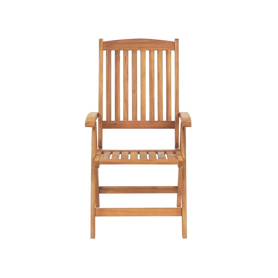 Opklapbare, houten tuinstoel in een set van 2. Deze tuinstoelen zijn een uitstekende aanvulling op elke tuin of balkon en passen bijzonder goed bij een traditionele stijlen. De tuinstoelen zijn gemaakt van massief acaciahout en zijn daarmee uitzonderlijk duurzaam en bestand tegen zowel langdurig gebruik als diverse weersomstandigheden. De tuinstoelen zijn inklapbaar en zijn daardoor gemakkelijk op te bergen en zeer geschikt voor kleinere ruimtes.