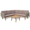 Modulair outdoor loungeset met tafel en kussens. Met deze moderne hoekbank geef je je buitenruimte een make-over. Het loungeset heeft een salontafel met een gemakkelijk schoon te vegen glazen blad. De sterke aluminium constructie zorgt ervoor dat het meubel er jarenlang goed uit blijft zien. De geweven rugleuning geeft het set een mediterrane flair. De witte afwerking past goed bij veel buitenstijlen en stelt je in staat om een persoonlijk tintje te geven, zoals decoratieve kussens of plaids.