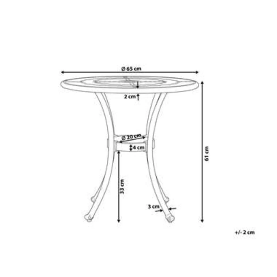 Vintage design aluminium buitentafel. Deze stijlvolle en praktische balkontafel is een geweldige aanvulling voor je tuin, patio of balkon. Het klassieke tafelblad is versierd met een opvallend bloemmotief voor een retrogevoel, terwijl de gebogen basis een vintage charme toevoegt aan het geheel. In combinatie met bijpassende stoelen is dit een unieke balkonset voor buiten.