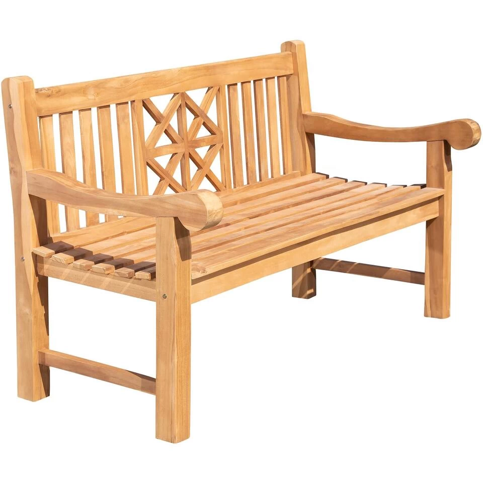 Zo n solide, massieve teakhouten bank is gewoon een deel van elke tuin. Met zijn tijdloze design past deze tuinbank overal perfect in beeld en kan hij ook harmonieus worden gecombineerd met bestaand terras of tuinmeubilair. De licht gebogen bank, de aangenaam liggende rugleuning en de gebogen armleuningen geven de teakhouten bank een ergonomisch zitcomfort. De stevige poten bestaan uit massief houten balken van 5×5 cm dik. Het kostbare houtteak is een extreem hoogwaardig en duurzaam materiaal. Uw teakhouten tuinmeubilair kan daarom zelfs het hele jaar door buiten zijn. Voor permanent onderhoud van de kleur teak worden geschikte onderhoudsoliën aanbevolen, die u desgewenst in de handel verkrijgt.