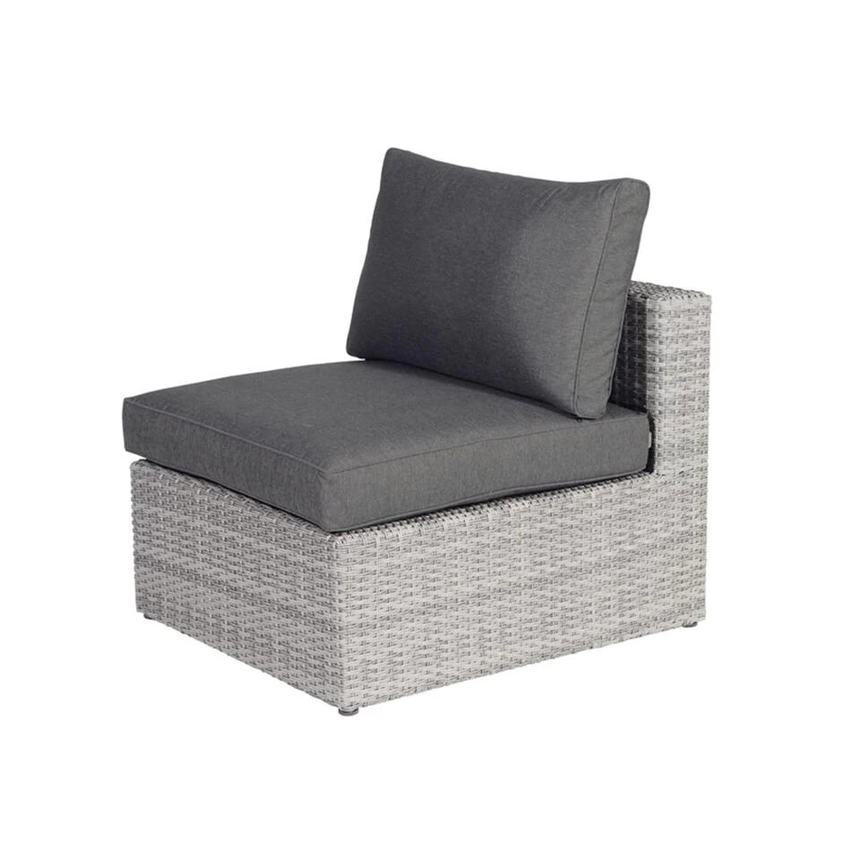 Dit lounge midden element is vervaardigd uit een onderhoudsvrij aluminium frame en weerbestendig 2 half wicker kunststof vlechtwerkdraad in de kleur vintage grey. Wicker is een stevig en duurzaam kunststof, waardoor je jarenlang kunt genieten van het Bruno midden element.