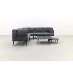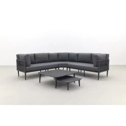 Het frame van de Nina/Aruba loungeset is gemaakt van stevig aluminium. Dit materiaal is perfect geschikt voor gebruik buitenshuis en kan niet verroesten. Voor extra bescherming is het frame behandeld met een poedercoating in de kleur: Carbon black. Deze coating zorgt ervoor dat het frame kras- en stootvast is. De loungetafels zijn ook gemaakt van aluminium. De meegeleverde kussens zijn voorzien van een waterafstotende coating, mocht er geknoeid worden met drinken dan veeg je dit er gemakkelijk vanaf. Ondanks deze coating zijn de kussens niet waterbestendig. We adviseren dan ook om na gebruik de kussens op een droge en geventileerde plek op te bergen. Als de kussens vies zijn geworden kun je de hoezen met de hand uitwassen. De hoezen zijn namelijk afritsbaar.