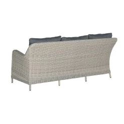 Deze driezits bank is vervaardigd uit onderhoudsvrij aluminium frame en weerbestendig half rond wicker kunststof vlechtwerkdraad in de kleur vintage willow. Het draad heeft een dikte van maarliefst 5mm, wat zorgt voor een mooie robuuste uitstraling. Wicker is een stevig en duurzaam kunststof, waardoor je jarenlang kunt genieten van deze set.