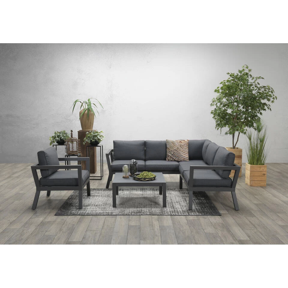 Deze prachtige aluminium loungeset bestaat uit drie delen. Een drie-persoonsbank, een tweepersoonsbank, een loungestoel en een loungetafel. De bankdelen zijn aan de onderkant gemakkelijk aan elkaar te bevestigen met het meegeleverde klittenband. Nadat de loungeset geleverd is dient deze nog wel gemonteerd te worden, wat eenvoudig zelf te doen is. Daarna kan het optimale ontspannen beginnen.