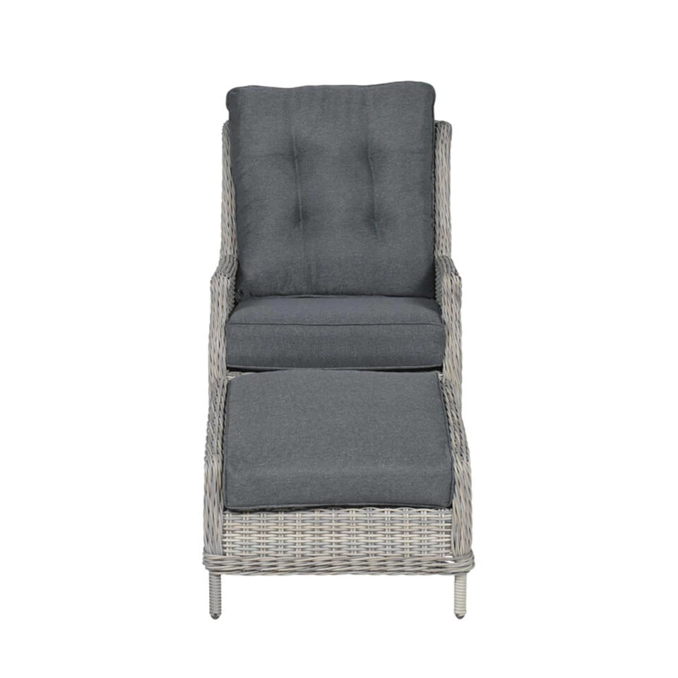 Deze relax lounge stoel wordt compleet geleverd inclusief bijpassende voetenbank, zodat je heerlijk met de voeten omhoog kunt relaxen. De afmetingen van deze stoel zijn: B 67 x D 85 x H 96 cm.