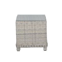 Ben je op zoek naar een mooie bijzettafel van wicker voor bij jouw Santa Rosa relaxfauteuils? Dan is deze vintage willow kleurige bijzettafel gemaakt van wicker echt iets voor jou. Dit bijzettafeltje heeft een aluminium binnenframe met daar omheen 6mm half rond wicker vlechtwerkdraad. Dit bijzettafeltje met heldere glasplaat past mooi bij de verstelbare relax fauteuil en voetenbank in hetzelfde vlechtwerk. Deze mooie bijzettafel heeft een afmeting van 45 x 45 x H46 cm. Een uitgebreide collectie bijzettafels vind je binnen de categorie tuinmeubelen. Tuinmeubelen van verschillende mooie merken.
