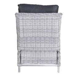 De Santa Rosa stoel beschikt over een onderhoudsvrij aluminium binnenframe met daaromheen hand gevlochten 5mm half rond kunststof wicker vlechtwerkdraad in de kleur cloudy grey. Deze relax lounge stoel wordt compleet geleverd inclusief bijpassende voetenbank, zodat je heerlijk met de voeten omhoog kunt relaxen.