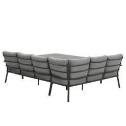 De Senja lounge dining set links is een prachtige en comfortabele lounge dining set die beschikt over dikke stevige kussens en een hoge rugleuning. Ideaal om comfortabel te zitten en heerlijk te ontspannen. Naast lekker comfortabel loungen is de set ook perfect om heerlijk aan te tafelen. De Senja lounge dining set is ontwikkeld door het kwaliteitsmerk Garden Impressions staat geweldig in iedere moderne tuin. De Senja lounge dining set is gemaakt van een onderhoudsvrij en weerbestendig aluminium met een stevige donker grijze poedercoating. Deze poedercoating zorgt ervoor dat er geen krassen en deuken in het frame komen. Het voordeel van aluminium is dat het geen onderhoud nodig heeft. Een set die vies is geworden door bijvoorbeeld opspattend regenwater is gemakkelijk schoon te maken met een sopje van groene zeep en een zachte doek. Om extra zitplekken toe te voegen kan de lounge dining set met een lounge dining stoel en een sportbankje uitgebreid worden. De tafel van de set heeft een latten structuur en beschikt over brede platte tafelpoten. Dit geeft de tafel een strak design. Verder is de lounge dining set voorzien van verstelbare pootdopjes. Hierdoor is de lounge dining set gemakkelijk waterpas te zetten. De meegeleverde kussens zijn lekker dik en zijn gemaakt van een hoogwaardige kwaliteit polyester. De kussens beschikken over een rits die ervoor zorgt dat de hoezen gemakkelijk met de hand schoongemaakt kunnen worden. De kussens zijn niet waterbestendig, het is dus handig om deze na gebruik op te bergen in de schuur of in een kussenbox. De kussens zijn echter wel voorzien van een waterafstotende coating. Hierdoor kan vocht er gemakkelijk af worden geveegd. Wanneer er drinken op het kussen gemorst wordt is dit dus eenvoudig schoon te maken. De Senja lounge dining set bestaat uit twee 3 persoonsbanken en een lounge dining tafel. Wanneer je een extra zitplek wilt toevoegen aan de Senja lounge dining set dan kan dat eenvoudig gedaan worden met de Senja loungestoel of het sportbankje van het kwaliteitsmerk Garden Impressions. Met de loungestoel of sportbankje creëer je eenvoudig een extra zitplek. Naast een linker opstelling is de lounge dining set ook verkrijgbaar in een rechter opstelling. De lounge dining set is 277 cm lang, 186 cm breed en 85 cm hoog. De afmeting van de lounge tafel is L 150 x B 90 x H 68 cm. De kleur van het aluminium van de lounge dining set is carbon black en de kleur van de polyester kussens is licht grijs. De lounge dining set is zowel leverbaar in een linker- als rechter opstelling.