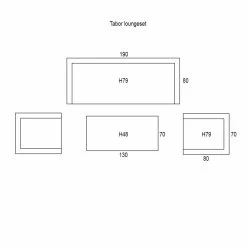De loungeset bestaat uit een bank, twee stoelen en een loungetafel. De loungeset wordt inclusief kussens geleverd. De comfortabele loungebank en tuinstoel zijn super mooi bij elkaar gecombineerd. Door de loungetafel kun je ideaal genieten van de zomerse dagen. De zit- en rugkussens van deze loungeset zijn van topkwaliteit met een hoge kleurintensiteit. Alle kussens zijn voorzien van een rits waardoor je ze gemakkelijk kunt wassen. Afmeting loungebank: 190 x 80 x 79 cm. Afmeting loungestoel: 80 x 70 x 79 cm. Afmeting lounge tafel: 130 x 70 x 48 cm.