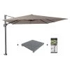 Wat de accessoires betreft, is het noodzakelijk ballast of opvulbare platen toe te voegen om ervoor te zorgen dat het op zijn plaats blijft. Happy Garden adviseert u ook om uw excentrieke parasol te beschermen met een hoes wanneer u hem niet gebruikt, zodat hij beschermd is tegen slecht weer.