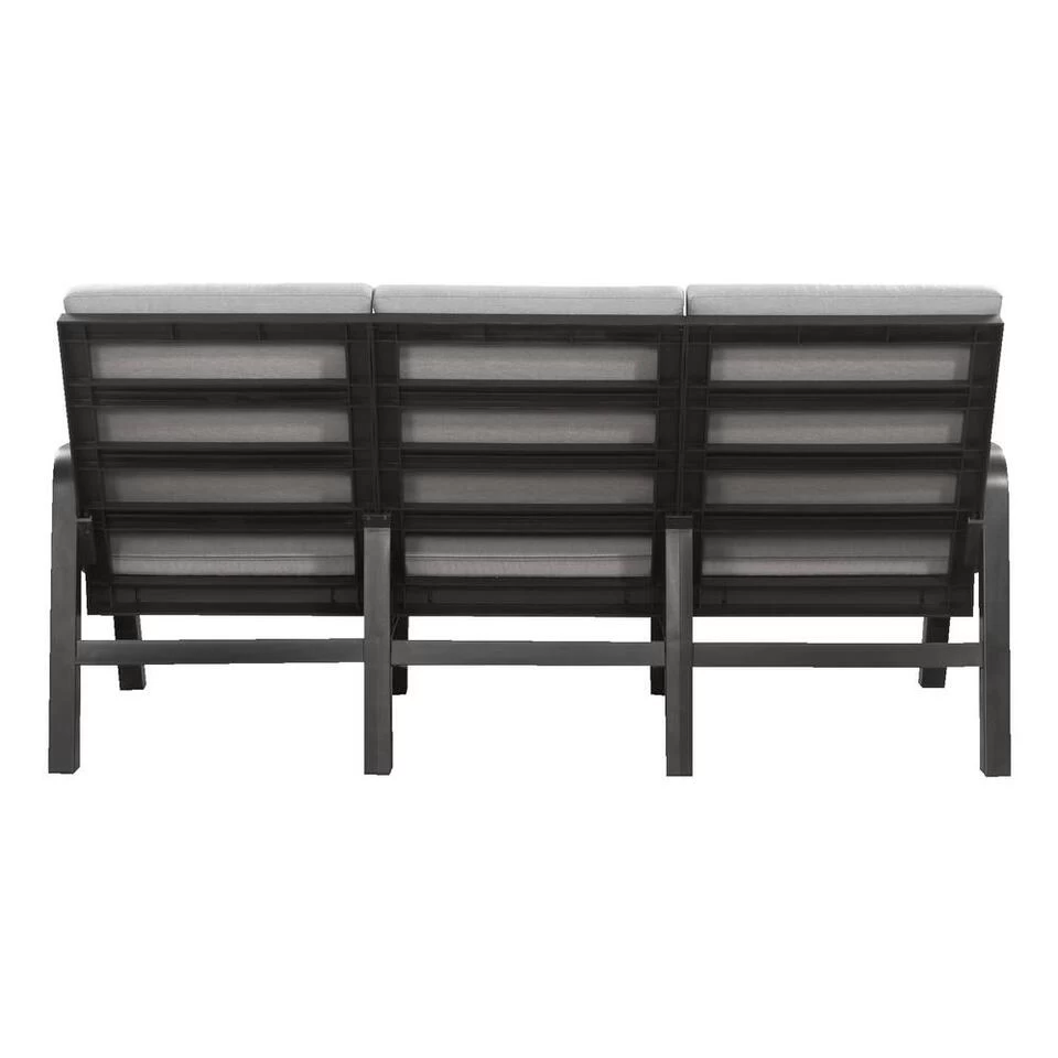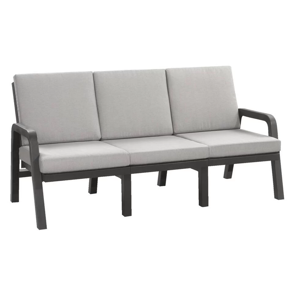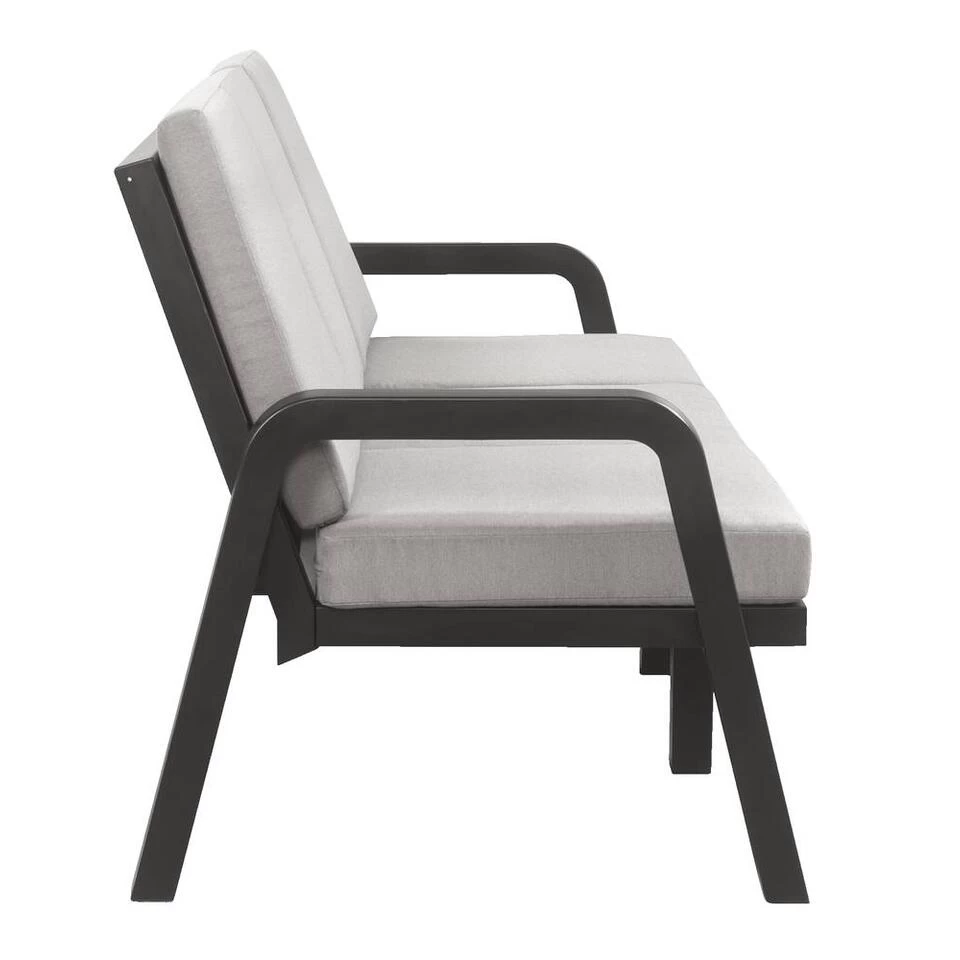 Loungebank Eden wordt geleverd inclusief grijze polyester kussens.