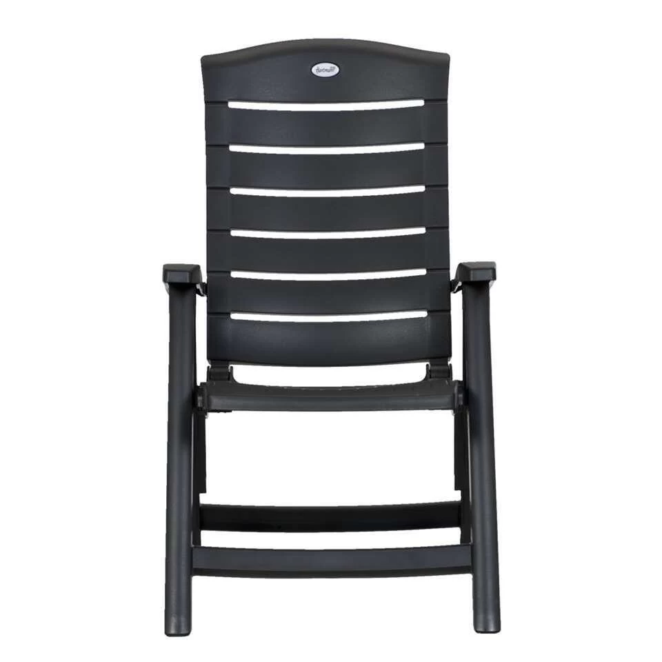 Terrasstoel Florion is een kunststof tuinstoel in de kleur antraciet. Deze kunststof tuinstoel staat garant voor een hoogwaardig zitcomfort. De stoel is modern vormgegeven en gemakkelijk op te bergen. Het kunststof is onderhoudsarm en weerbestendig. Deze tuinstoel kan dus uitstekend tegen een buitje. Terrasstoel Florion is een stoel die verstelbaar is in maar liefst 5 standen. Zet de stoel rechtop als je gaat eten en zak daarna lekker onderuit en geniet van een fijne zomeravond!