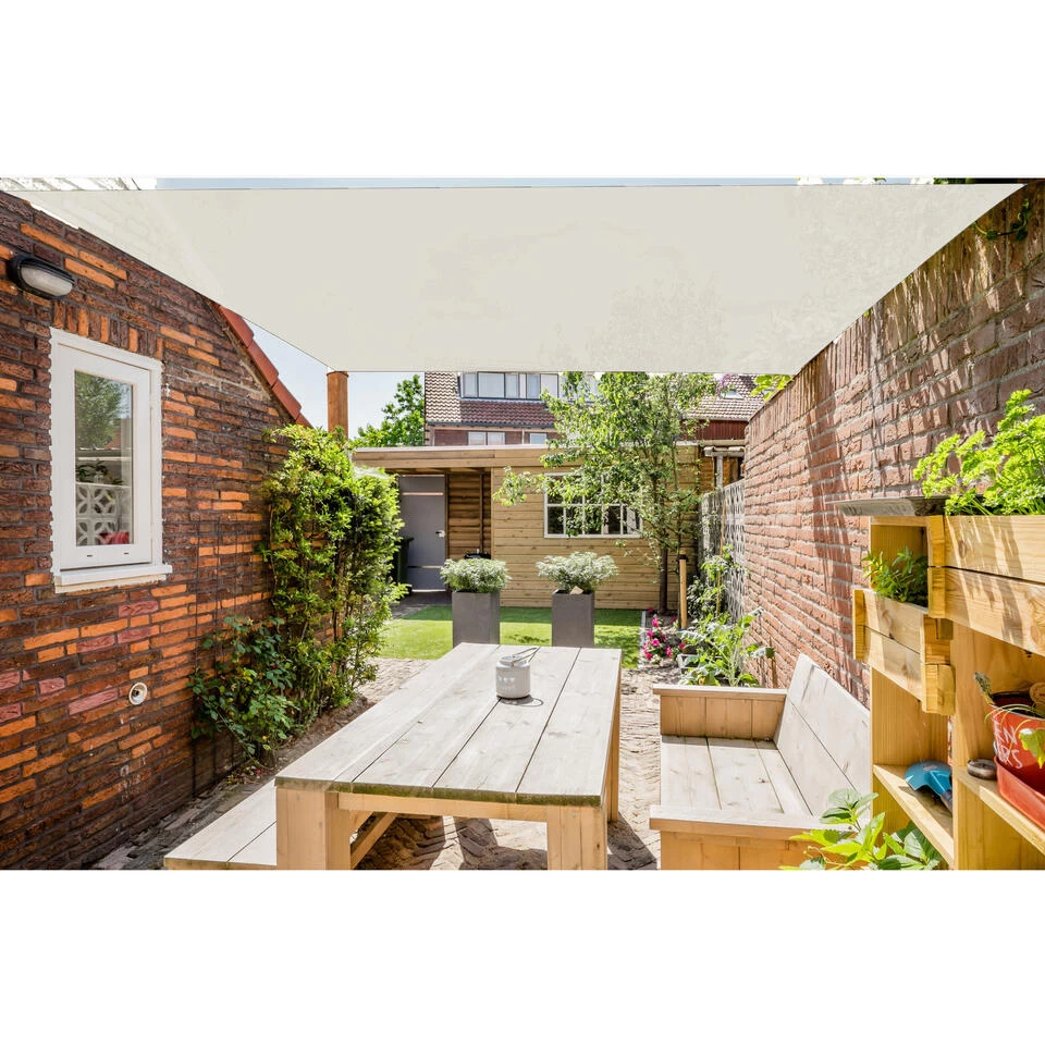 Schaduwdoek/zonnescherm/zonwering rechthoekig wit 3 x 4 meter. Stevig schaduwdoek van waterafstotend gecoat polyester om een fijne schaduwplek te realiseren in uw tuin. Inclusief 3 meter touw voor de bevestiging. Biedt UV UPF50 bescherming tegen de zon. Serie: Curacao. Schaduwdoeken/zonnezeil/zonnedoek/zonwering voor in de tuin of terras.