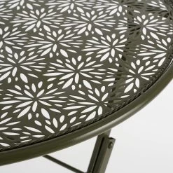 Creëer een romantisch zitje in de tuin met deze Tierra bistrotafel van Mica Decorations. De donkergroene bistrotafel voor buiten is gemaakt van stevig metaal en valt op door het elegante design. In het ronde blad is namelijk een sierlijk motiefje verwerkt. De tafel is 70 cm hoog en heeft een diameter van 60 cm. Ook stijlvol om te combineren met bistrostoelen uit de Tierra collectie van Mica Decorations om er een complete set van te maken.
