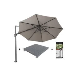 Platinum Challenger T2 3.5m. rond parasol Manhattan Grey met voet en hoes