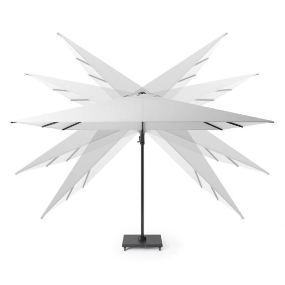 De Challenger T2 zweefparasol is voorzien van een voetpedaal waarmee deze 360 graden kan worden gedraaid. Zo kan je dus altijd in de schaduw zitten zonder de parasol te hoeven verplaatsen. Doormiddel van het speciale T2 systeem kan de parasol naar links en rechts worden gekanteld. Hierdoor kan je perfect inspelen op de stand van de zon. Daarnaast kan de parasol ook achterwaarts worden gekanteld wat erg handig is bij een laagstaande zon.