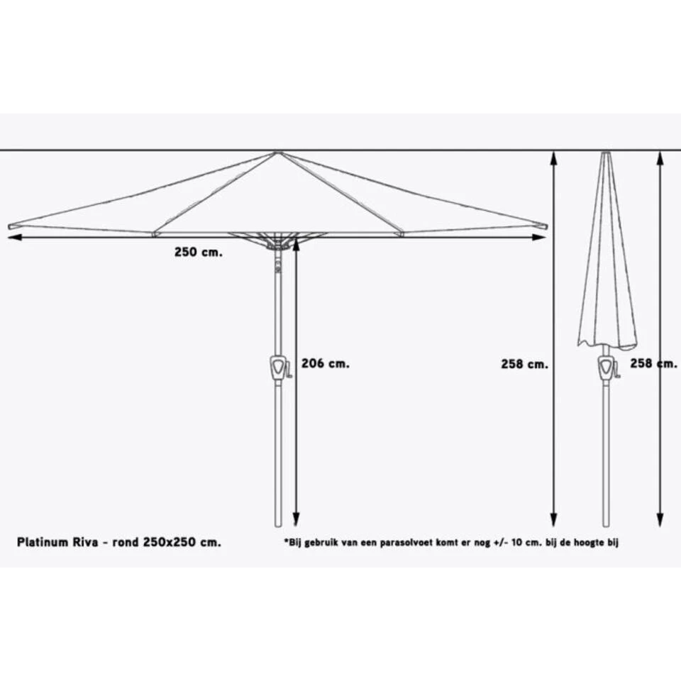 Platinum Riva Stokparasol 2.5×2.5 – Antraciet Met Voet En Hoes