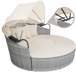 Hoogwaardig aluminium wicker zonne-eiland met opklapbaar zonnedak (door middel van twee gasveer-cilinders)