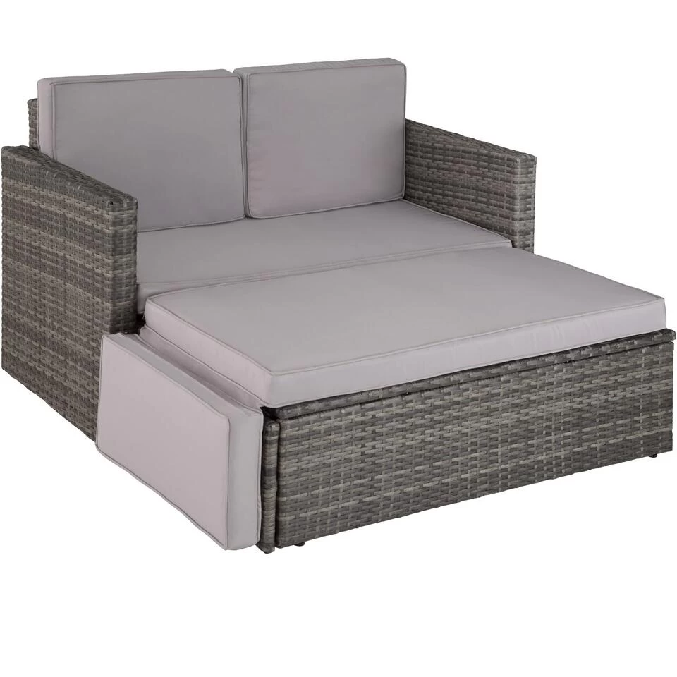 De chique wicker loungesofa van tectake biedt met zijn dikke kussens hoog zitcomfort en zo een ideale omgeving om te ontspannen en babbelen in open lucht. De grote kruk met de uitklapbare steun kan naar believen als voet- of zitbank tot op de millimeter precies met de sofa worden samengezet. De montage is eenvoudig en snel geklaard. In gebruik is het vuil- en waterafstotende tuingarnituur eenvoudig schoon te houden met een vochtige doek. Het fijne vlechtwerk van duurzaam wicker en het stabiele onderframe van gepoedercoat staal kenmerken deze ratan loungesofa met lange levensduur van tectake.