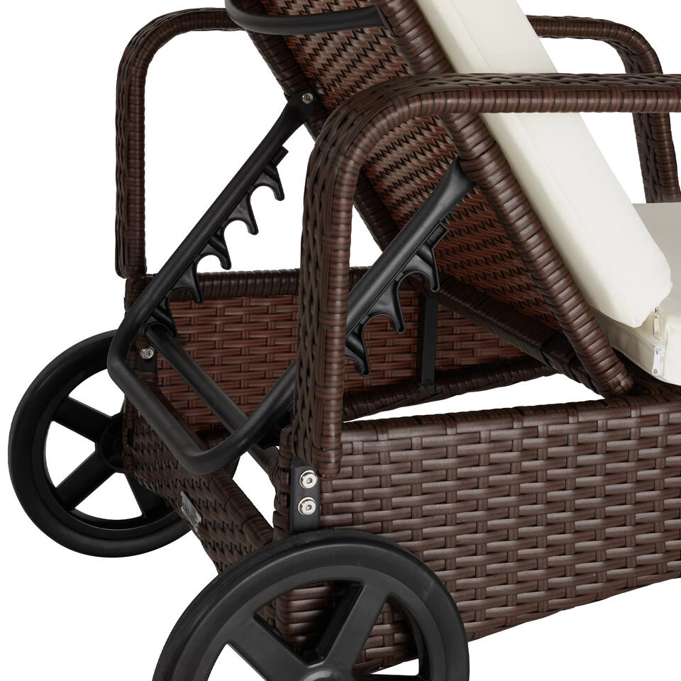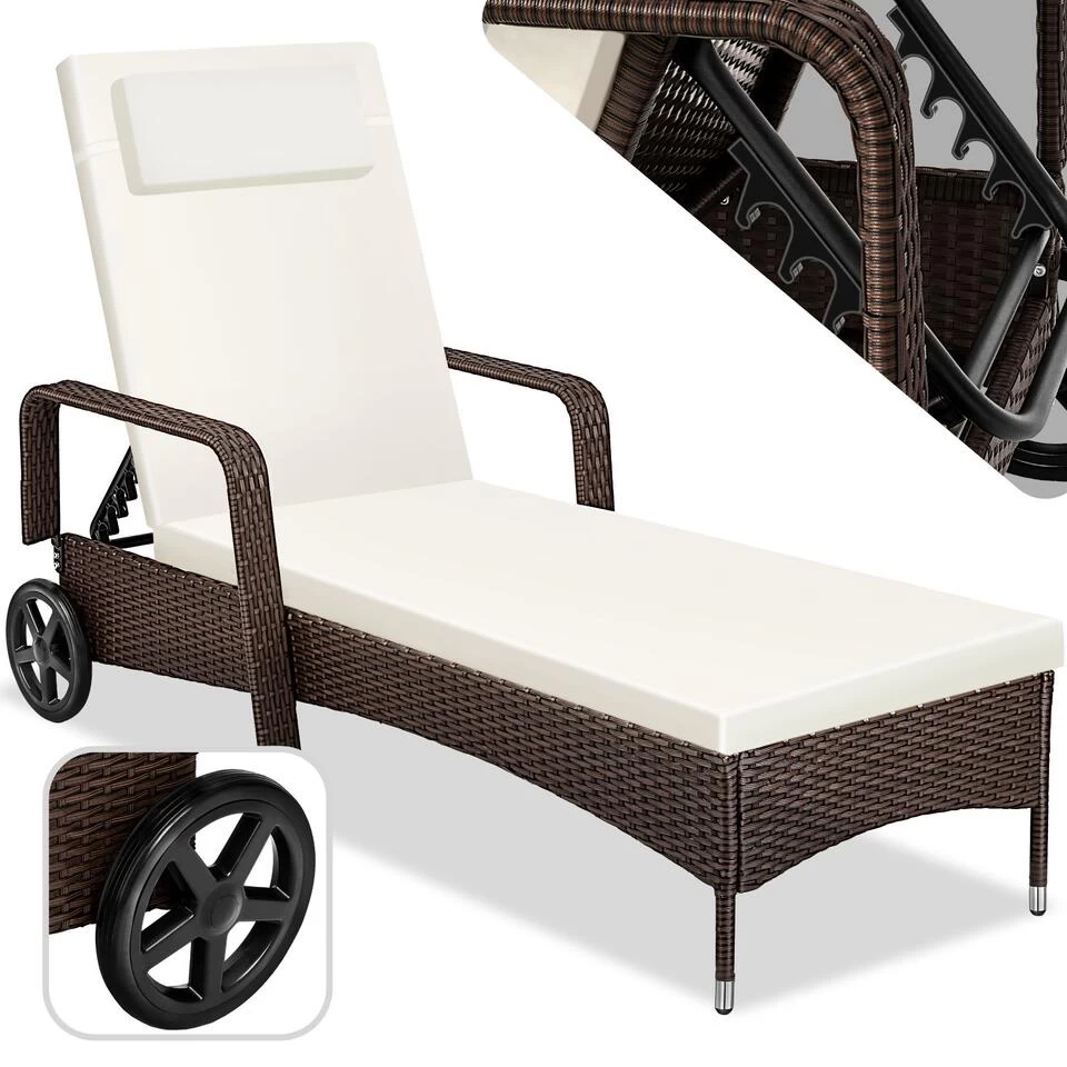 Dit luxe lounge ligbed is perfect geschikt voor je tuin, balkon, terras of in je wellness-ruimte. Een sierlijk design met eenvoudige vormen en innovatieve materiaalcombinaties maken het ligbed ook optisch perfect. De wielen aan het hoofdeinde zorgen voor eenvoudige verplaatsing. De rugleuning kan in 6 stappen in hoogte versteld worden en kan daardoor gericht worden naargelang de stand van de zon. Het stabiele aluminium frame en de het makkelijk te onderhouden materiaal zijn optimaal geschikt voor buiten en binnen. Een leuk extraatje is de comfortabele, verwijderbare bekleding en het aparte hoofdkussen. Heerlijk ontspannen en dagdromen op dit prachtige ligbed!
