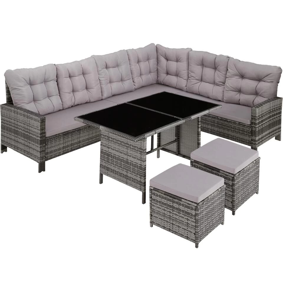 Geniet van gezellige en knusse momenten met familie of vrienden op deze schitterende wickerset. De zachte kussens op de banken zorgen voor optimaal zitcomfort. De krukken kunt u gebruiken als extra zitplaatsen voor visite of om uw benen op te steunen. De individuele elementen van de zitgroep zijn variabel verstelbaar en kunnen steeds opnieuw worden opgesteld. Het sterke frame van staal en het duurzame vlechtwerk van wicker garanderen de hoge belastbaarheid van onze ratanset.