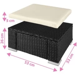 Vierkant, praktisch, stijlvol: de wickerzitkruk van tectake is een blikvanger in uw tuin – alleen of als aanvulling op een bestaande wicker set. De onderhoudsvriendelijke constructie van roestvrij stalen schroeven en wicker kunnen niet aangetast worden door wind, zon of regen. Het grote, dikke zitkussen is perfect op de kleur van de kruk afgestemd. Om tegen het binnendringen van vocht te beschermen, is het oppervlak geïmpregneerd. Door zijn hoogte is de stabiele zitkruk ook ideaal geschikt als neerzetmogelijkheid voor dranken, boeken en dergelijke. Trakteer uzelf op ontspanning en leg je benen omhoog op de comfortabele wicker zitkruk van tectake.