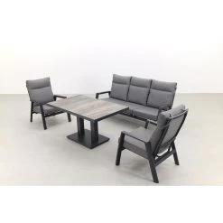 Op zoek naar een loungeset waarmee je alle kanten op kunt? Dan is deze Azoren/Jersey loungeset de juiste keus voor jou! Bij deze loungeset zijn de rugleuningen van de stoelen én de bank verstelbaar, daar bovenop is de loungetafel ook in hoogte te verstellen! Zo kan je met deze loungeset echt alle kanten op. Je kunt heerlijk borrelen met vrienden, relaxen in de zon of genieten van een heerlijk diner. Door de stijlvolle uitstraling van deze loungeset past hij al snel in je tuin. De dikke kussens zorgen ervoor dat je geniet van optimaal zitcomfort. Kortom, de ideale loungeset voor jou!