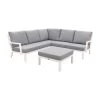 De Boavista loungebank wordt gekenmerkt door de vele verschillende mogelijkheden. Deze bank heeft namelijk verschillende losse delen die naar eigen wens aan elkaar gekoppeld kunnen worden. Mocht je een combinatie willen die je nog niet hebt gezien, kan je natuurlijk altijd contact met ons opnemen! Deze loungebank wordt gesierd door een stevig aluminium onderstel. Een materiaal dat perfect is voor tuinmeubelen omdat het niet gaat roesten en geen onderhoud nodig heeft. Over het aluminium frame is Sunbrella stof aangebracht. Deze stof is van all weather kwaliteit en zorgt ervoor dat jouw loungebank heerlijk zacht is! Door de goed gevulde zitting ben je verzekerd van goed zitcomfort, een eigenschap die erg belangrijk is voor jouw loungebank.