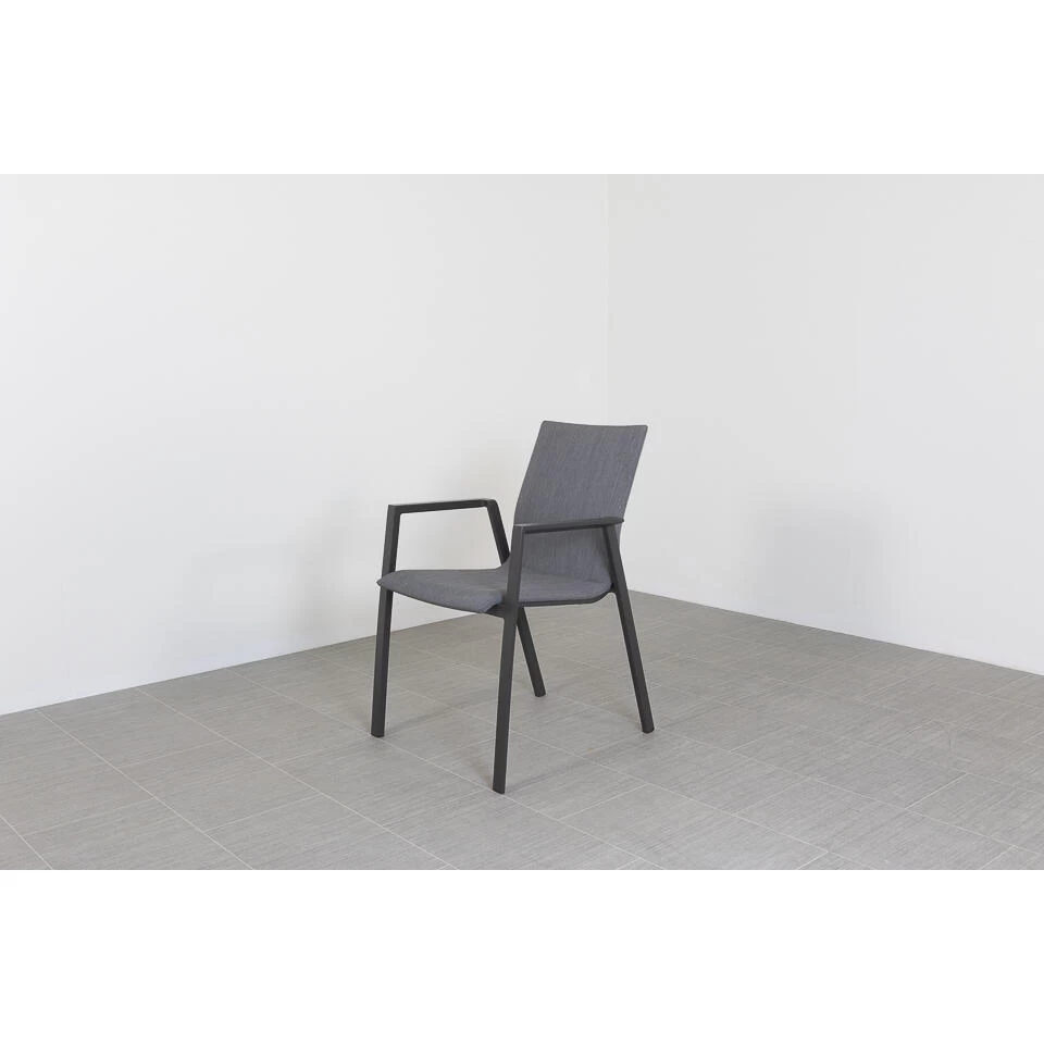 De Stapelbare tuinstoel Lima is een strakke tuinstoel met een morderne vormgeving uit de ruime collectie tuinstoelen. De stoel is gemaakt van aluminium frame met antraciet coating. De zit en rugleuning zijn gemaakt van textileen. Dit textileen is grijs van kleur en combineert erg goed bij het antraciet frame. De stoel is erg goed te combineren bij verschillende tuintafels.