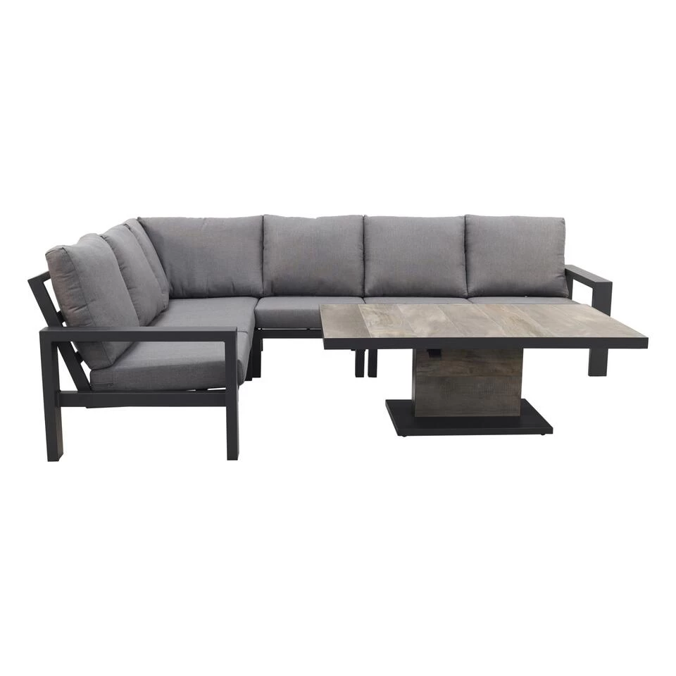 Op zoek naar een moderne en comfortabele loungeset? Dan is de Montana/Jersey loungeset zeker een aanrader. Dankzij de in hoogte verstelbare tafel is het ook mogelijk om te dineren. Hierdoor kun je optimaal genieten van het buitenleven. De Montana/Jersey loungeset antraciet heeft een comfortabele zit en wordt geleverd met dikke loungekussens. De loungeset bestaat uit 1 linkse bank, 1 rechtse bank, 1 hoekelement, 1 middenelement en 1 lounge/diningtafel. Voor een nog sfeervollere uitstraling kun je er ook voor kiezen om de loungeset te combineren met een buitenkleed.