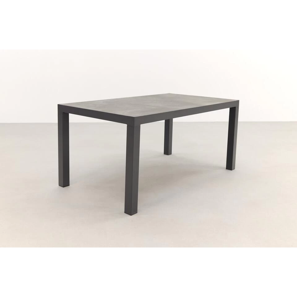 De President tuintafel heeft een aluminium frame. Het aluminium frame is afgewerkt met een beschermende poedercoating die kras- en stootvast is. Voordeel van aluminium is dat dit materiaal licht in gewicht is, niet kan verroesten en weinig onderhoud nodig heeft. Hierdoor ervaar je jarenlang plezier van deze stijlvolle tuintafel. Als tafelblad is er gekozen voor keramiek. Keramiek is een harde steensoort en dus perfect geschikt als tafelblad. Het keramiek heeft een betonlook waardoor de tafel een stoere uitstraling krijgt. Net als het frame heeft ook het tafelblad weinig onderhoud nodig. Af en toe schoonmaken met een nat doekje volstaat.