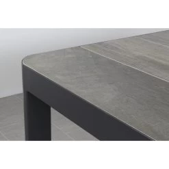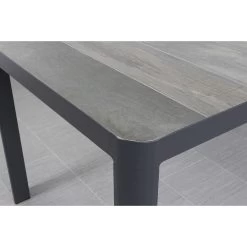 De tuintafel heeft een stevig aluminium frame. Dit materiaal is licht van gewicht en heeft weinig onderhoud nodig. Voor extra bescherming is het frame voorzien van een beschermende antracietkleurige coating. Het tafelblad van de Queens tuintafel is gemaakt van keramiek. Keramiek is een harde steensoort en dus perfect geschikt als tafelblad. Het keramiek heeft een houtlook, op deze manier straalt de tuintafel warmte uit en geeft het een stijlvolle uitstraling. Voordeel van keramiek is dat dit materiaal weinig onderhoud nodig heeft en bestand is tegen diverse weersomstandigheden. Perfect geschikt voor buiten!