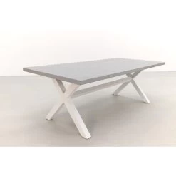 Op zoek naar een unieke tuintafel met een moderne uitstraling? Dan is de Verona betonlook tuintafel zeker een aanrader. De opvallende X poten in combinatie met het strakke tafelblad zorgen ervoor dat deze tuintafel een echte eyecatcher is. Met zijn afmetingen van 220 x 100 cm. biedt de tuintafel ruimte aan 6 personen.Â