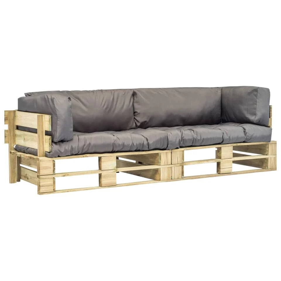 De loungeset is gemaakt van geïmpregneerd grenenhout waardoor hij duurzaam, weerbestendig en milieuvriendelijk is. Deze tuinbankenset heeft een massieve constructie en vergt weinig onderhoud. Omdat hij wordt geleverd met zachte, dik opgevulde kussens biedt onze loungeset het hoogste comfort.