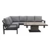 De makkelijk schoon te maken en slijtvaste tuinmeubelset is gemaakt van hoogwaardig aluminium en HKC, waardoor hij geschikt is voor dagelijks buitengebruik. Het aluminium frame maakt de set erg stevig en duurzaam. Hij is makkelijk te verplaatsen dankzij de lichtgewicht aluminium constructie. Deze set wordt geleverd met zeer comfortabele, dik gevulde zit- en rugkussens en 5 kussen in verschillende kleuren.