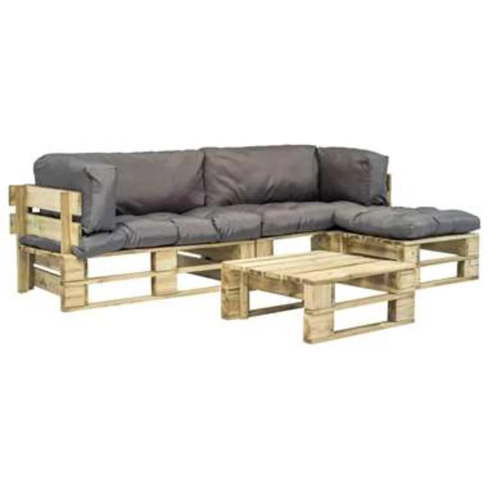De loungeset is gemaakt van geïmpregneerd grenenhout waardoor hij duurzaam, weerbestendig en milieuvriendelijk is. Deze tuinbankenset heeft een massieve constructie en vergt weinig onderhoud. Omdat hij wordt geleverd met zachte, dik opgevulde kussens, biedt onze meubelset het hoogste comfort. De salontafel is ideaal voor het binnen handbereik houden van eten en drinken.