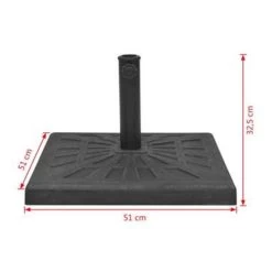 Deze zeer decoratieve parasolvoet is gemaakt van weerbestendig hars. Hij heeft een vergrendelingsbout om de paal van de parasol op zijn plaats te houden in de buis van 57 mm. 2 adapters zijn inbegrepen, waardoor de voet geschikt is voor parasolpalen met een diameter van 38 en 48 mm.
