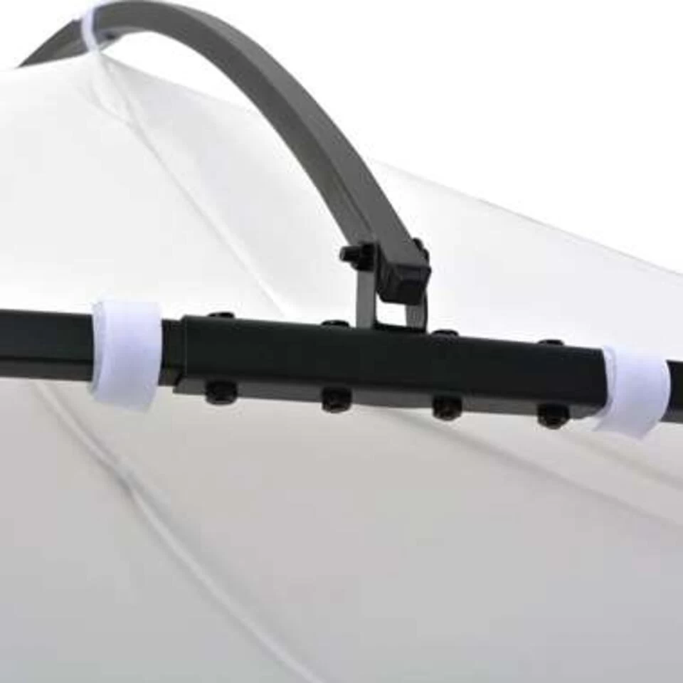 De luifel heeft een ventilatiegat en zorgt ervoor dat de zon en de regen het plezier niet bederven tijdens familieaangelegenheden, barbecues, picknicks en verjaardagsfeestjes. De partytent heeft een stevige, ijzeren constructie met sierlijke, decoratieve details en een polyester dak. De luifel heeft verstevigde randen en kan gemakkelijk met klittenband aan het frame worden bevestigd.