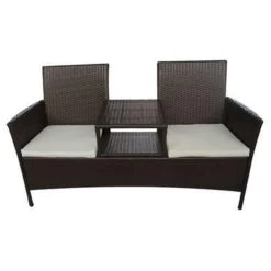 Dankzij het weerbestendige en waterdichte PE rattan is de bankset eenvoudig schoon te maken, slijtvast en geschikt voor dagelijks gebruik. De bank heeft een stevig gepoedercoat stalen frame. De bank is ook erg licht, waardoor je hem gemakkelijk kunt verplaatsen. De 2 zittingen zijn verbonden met een tafeltje, waarmee je je drankjes en je favoriete boeken binnen handbereik kunt houden.