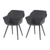 Deze tuinstoelenset is gemaakt van zwart PVC-rattan en zwart gepoedercoat stalen frame. Hij is het middelpunt van je tuin, balkon of terras. De set heeft een ergonomisch ontwerp dat bedoeld is voor optimaal zitcomfort. De stoelen kunnen worden gestapeld om ruimte te besparen wanneer ze niet in gebruik zijn. Ze bieden de perfecte plek om een boek te lezen, een kopje koffie te drinken, een praatje te maken met anderen of te ontspannen. De stoelenset is gemakkelijk schoon te maken en te onderhouden.