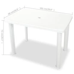 De buitentafel is gemaakt van duurzaam kunststof, dit maakt hem weerbestendig en makkelijk schoon te maken. De tafel heeft een parasolgat zodat je een parasol met de tafel kunt gebruiken en koel in de schaduw kunt zitten. Hij is ook lichtgewicht, hierdoor is hij makkelijk te verplaatsen. Montage is erg eenvoudig.