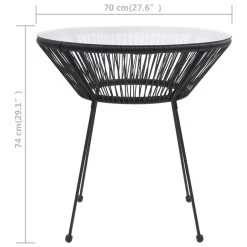 - Materiaal: ronde PVC-rattan, gehard glas, gepoedercoat staal